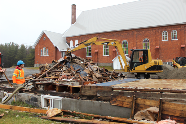 - Demolished church site left exposed rebar, concrete slabs, wood, and metal